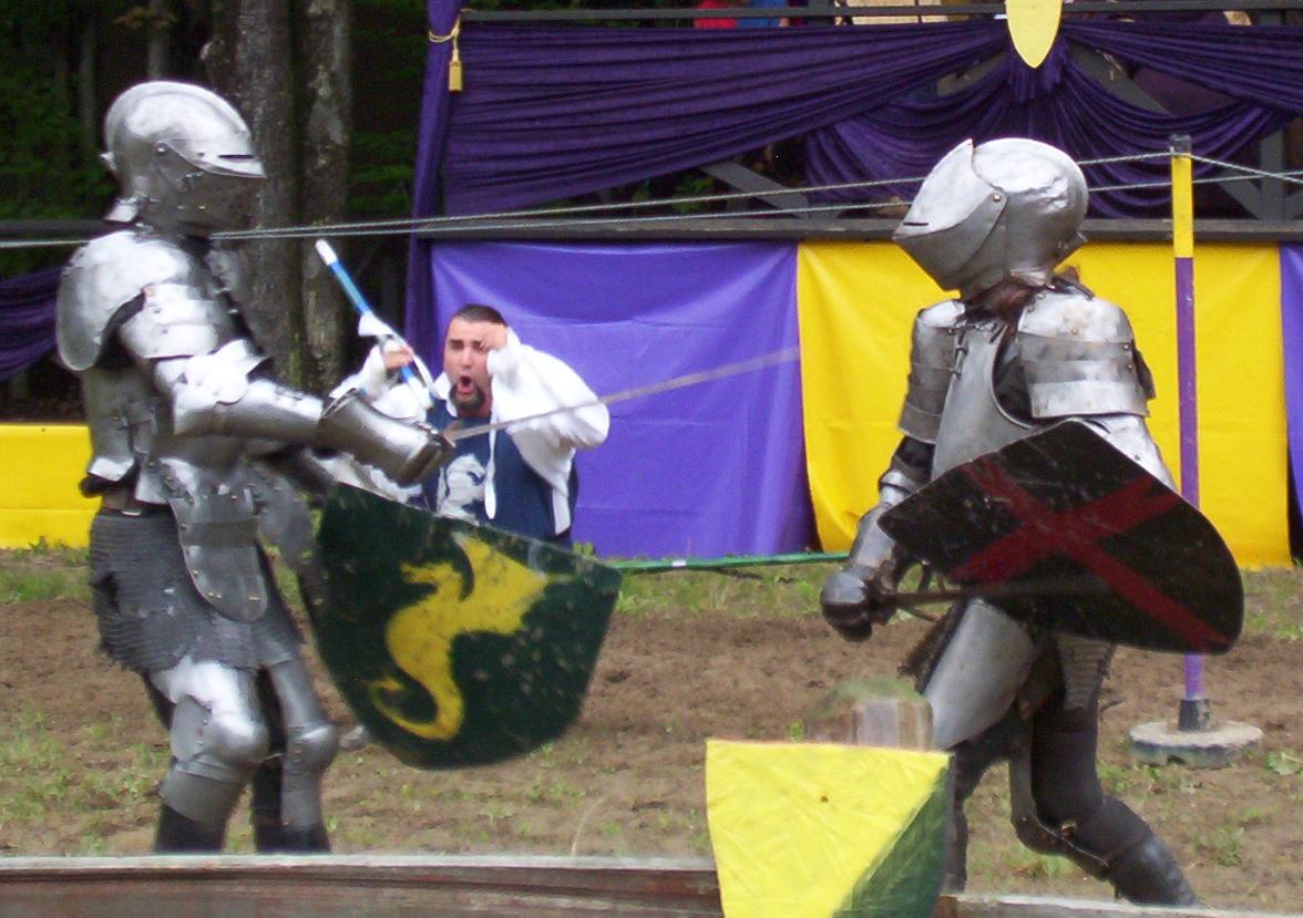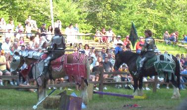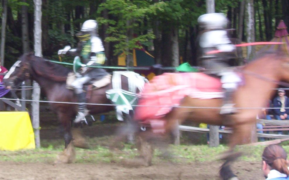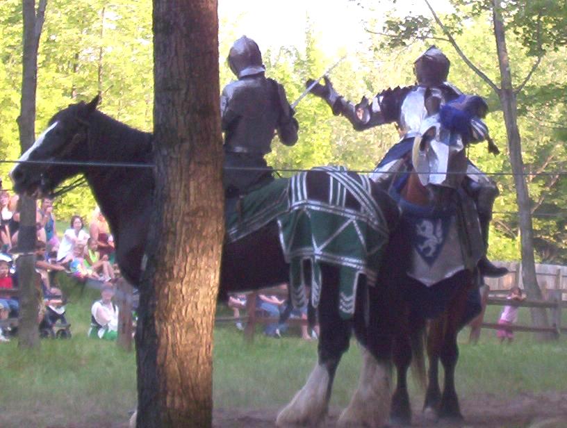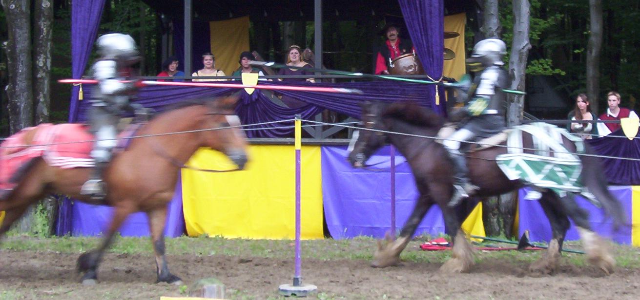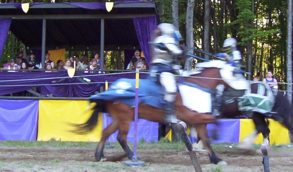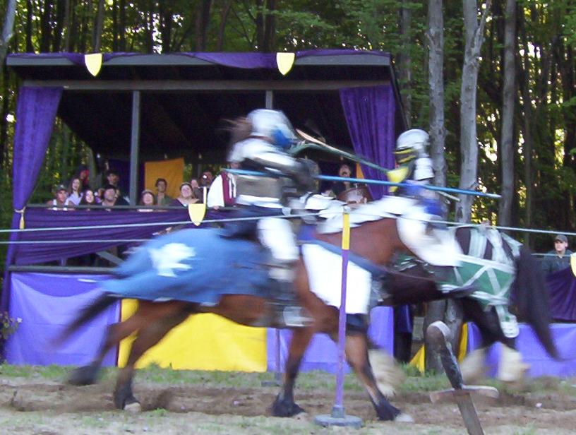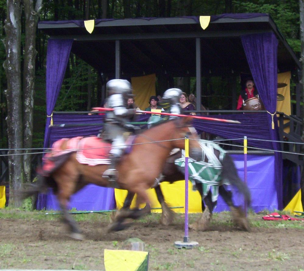 It is great to see live jousting. I know the rest of the fights are scripted, but the jousting, anything can happen. The lances are real. They are not weakened so they break easily. And to do those fights with all that armor must take a lot to do. Those suits of armor are not light by any means.