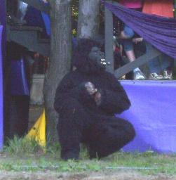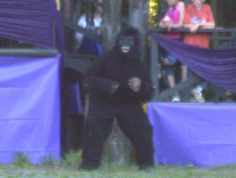 happened. A gorilla came out from under the dias to grab the