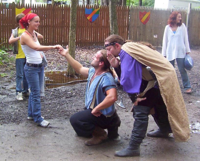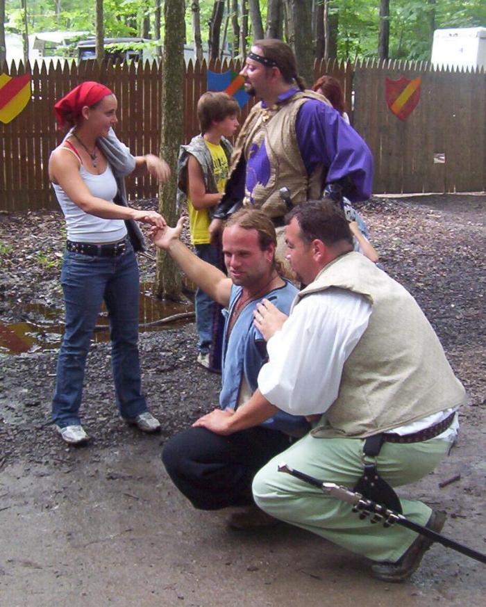 The king had to give him some pointers (center)