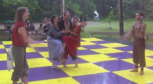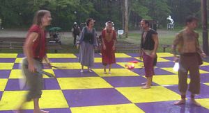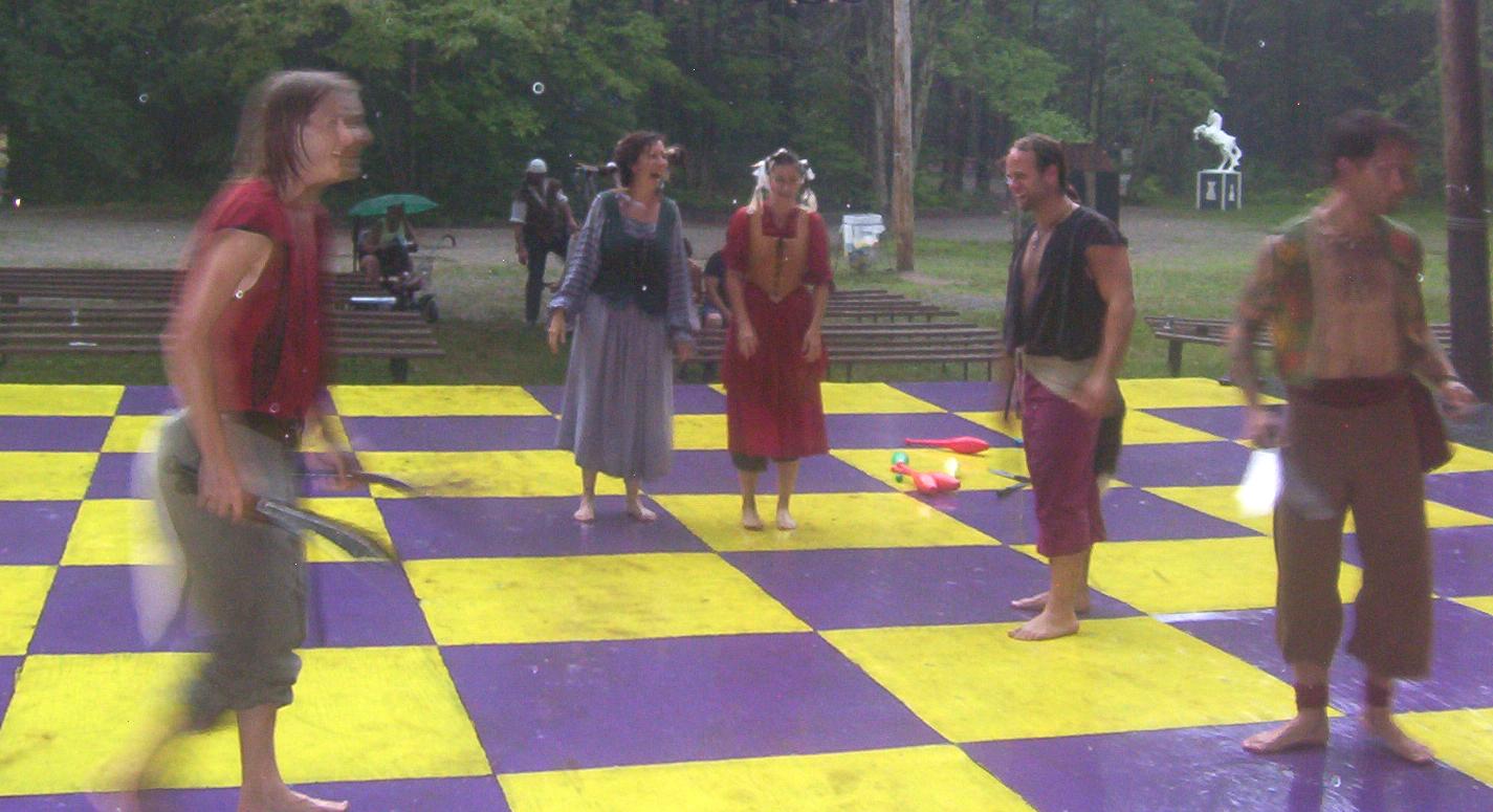 doorways on the chessboard to watch the show.