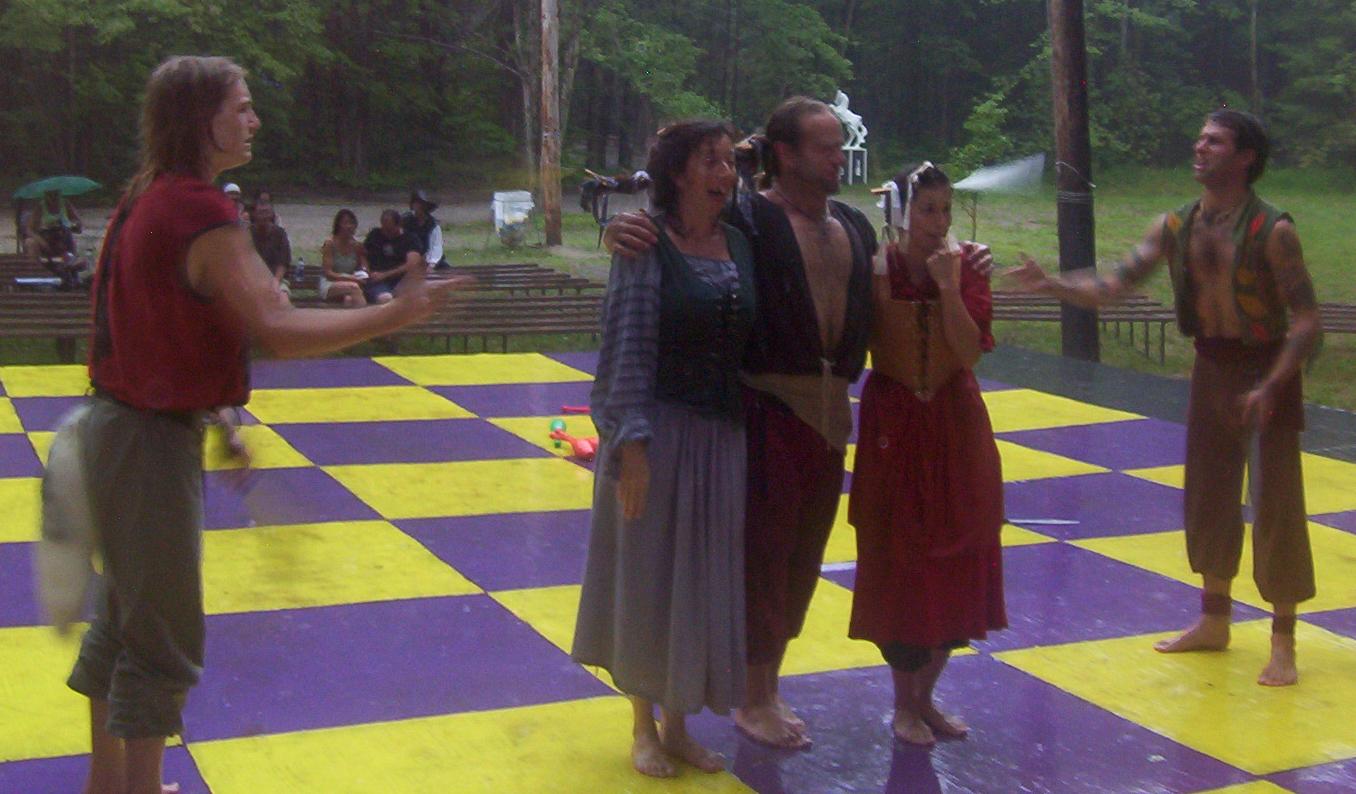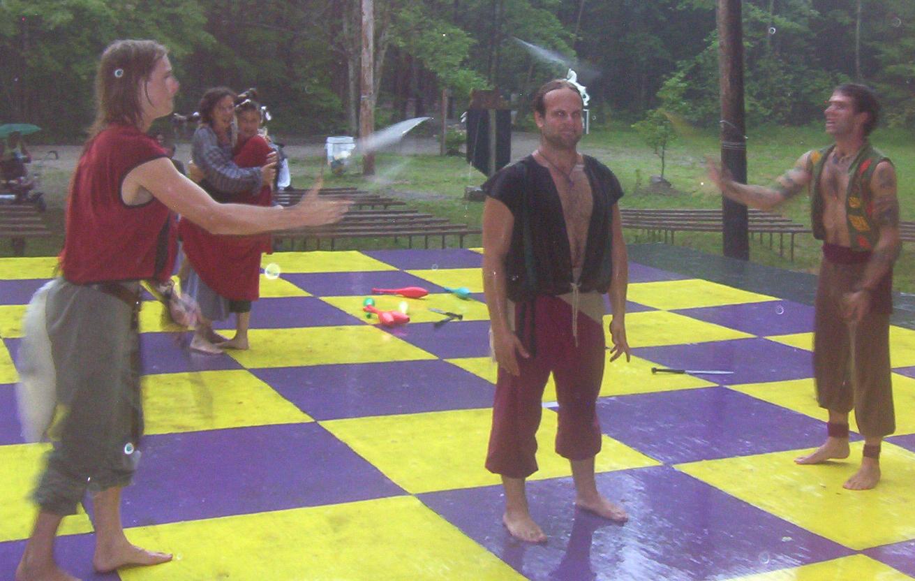 show performed in the middle of a huge downpour.