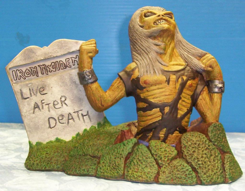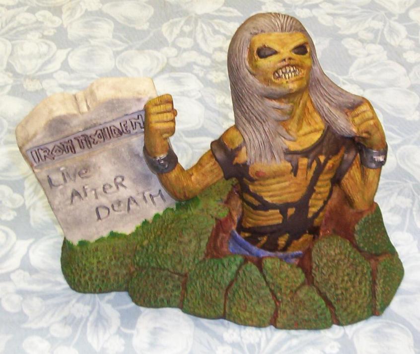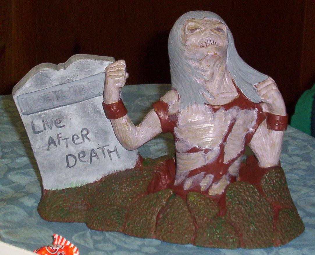 lettering for "Iron Maiden" on the tombstone.