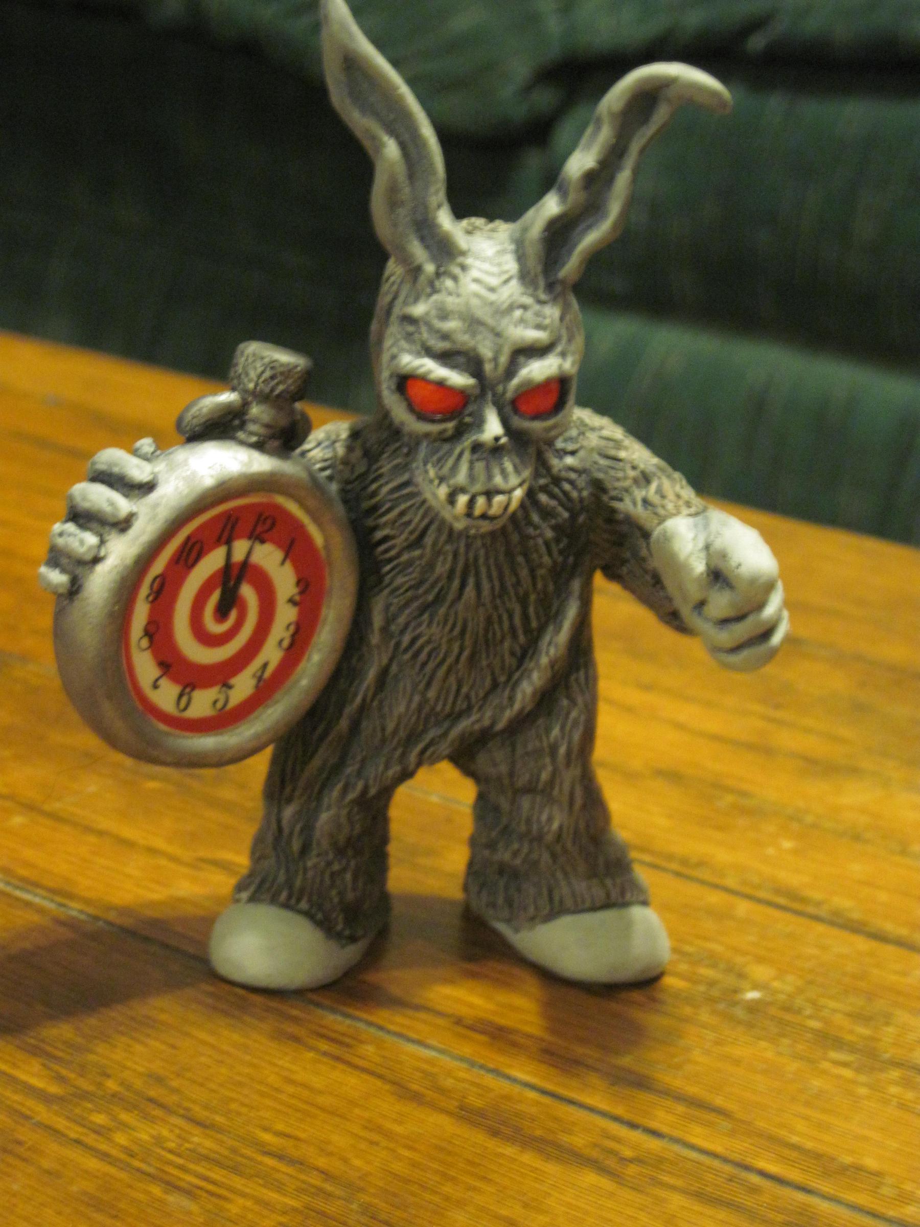 ![]() Decided to stick with the brownish look. Drybrushed the head light gray. Whitened the teeth, eyes, and clock face. Added the decal, and made the eyes red. |