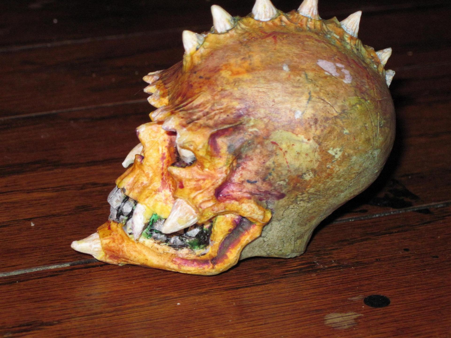 A little touch up on the horns and spikes with some clear-white. |