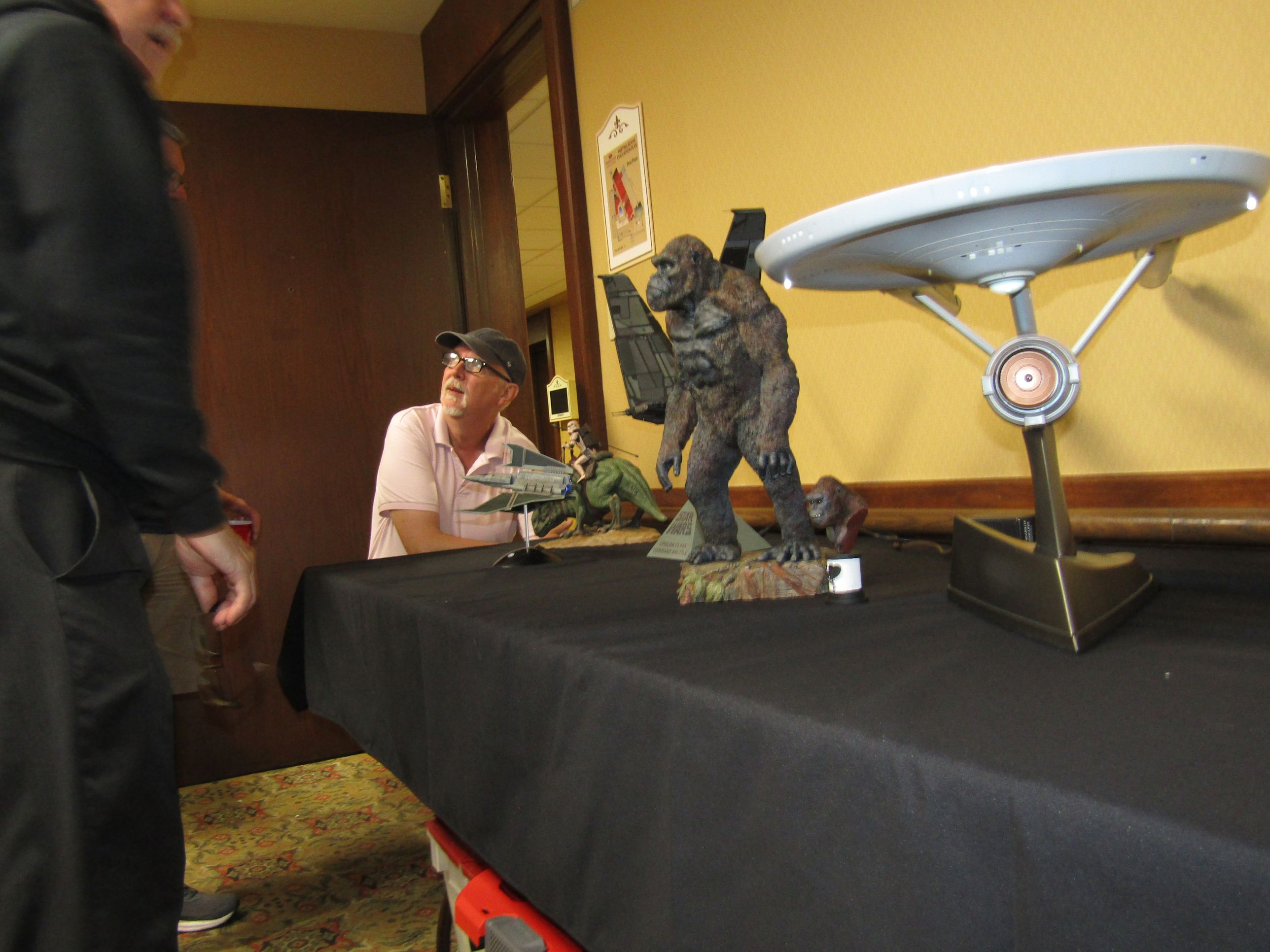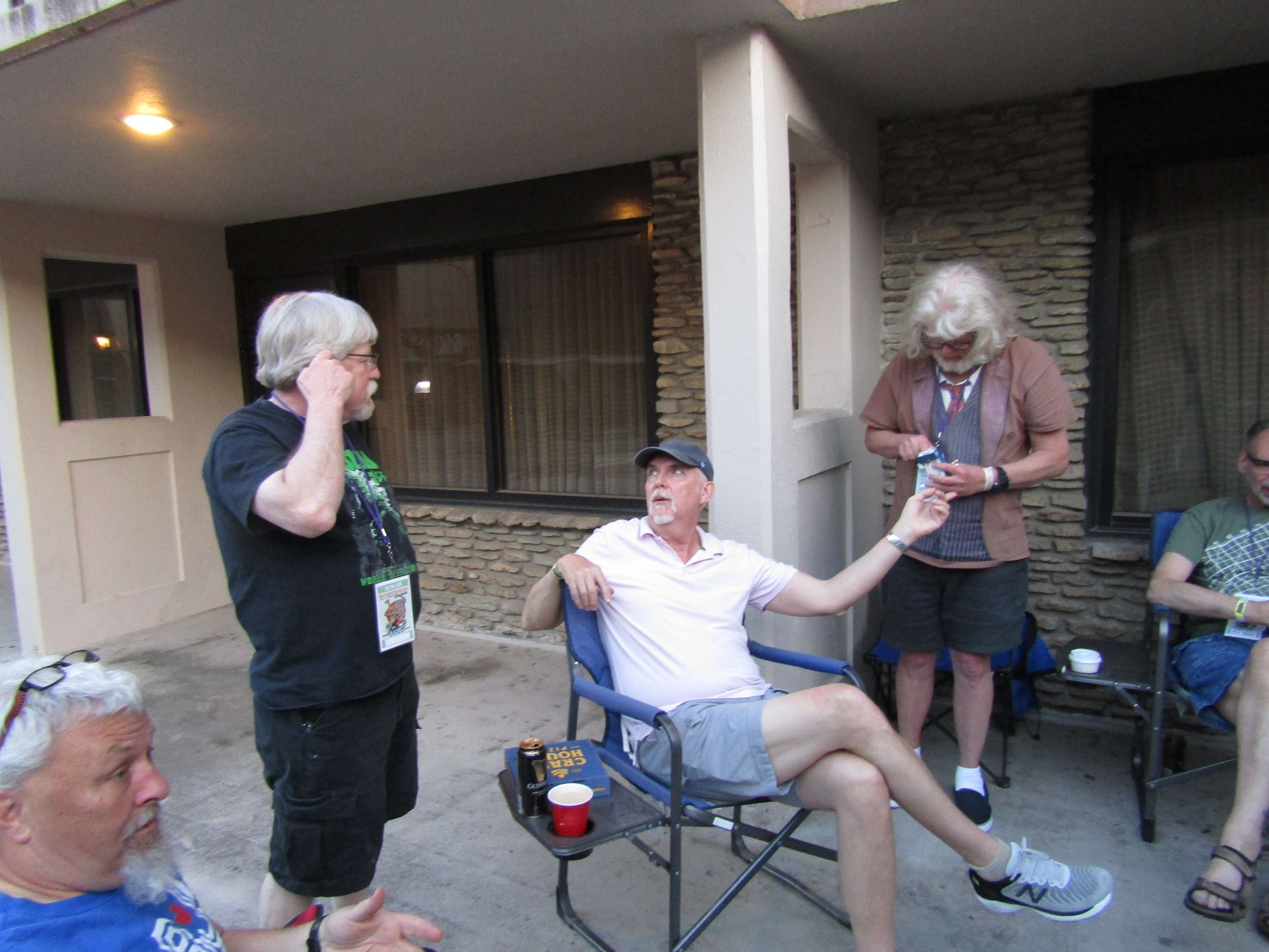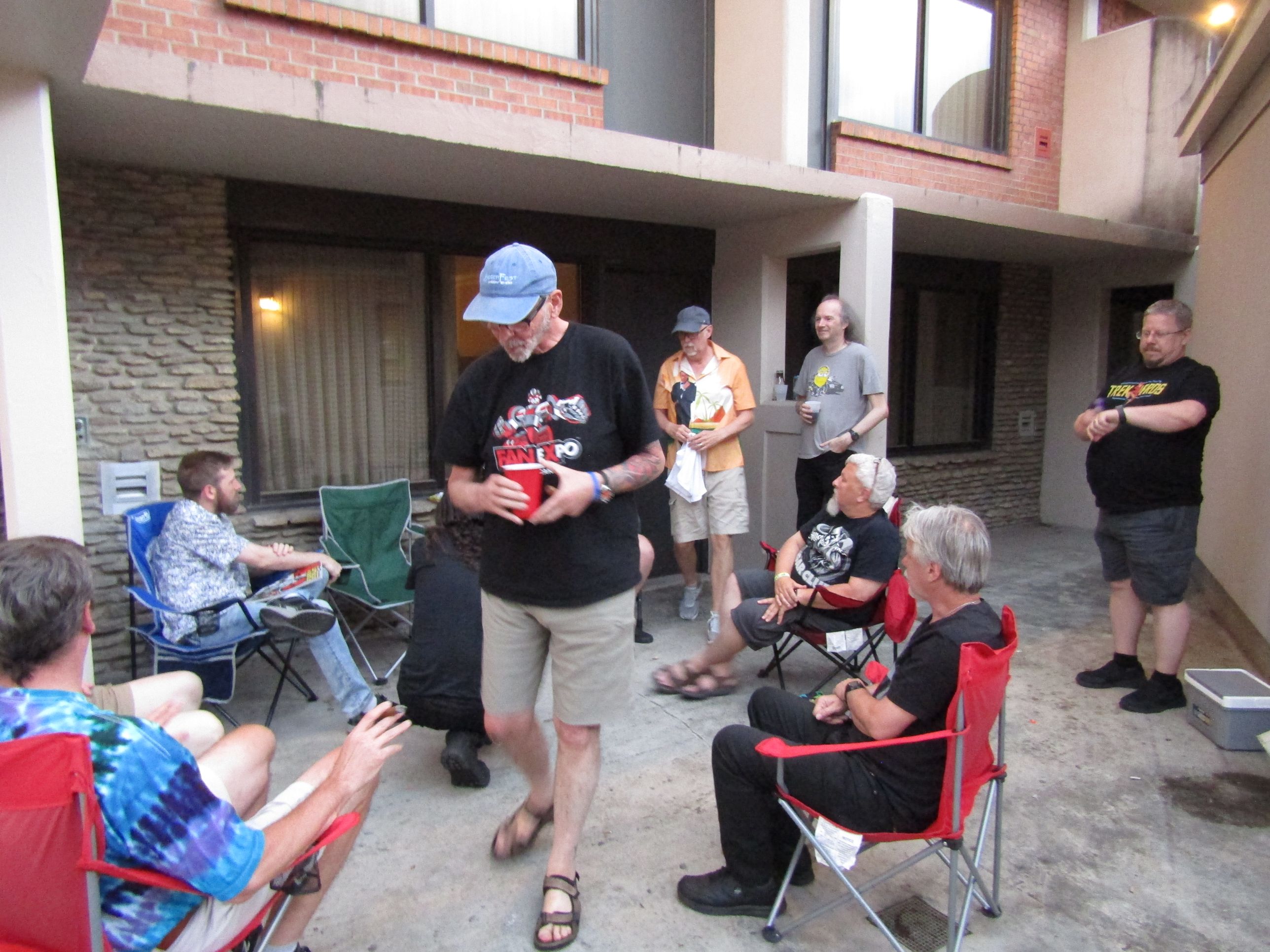 of cool people to visit with. i circulated between the Iwata room, the lobby, outside the load-in doors, and the patio. I ran into Joe (barad_dur on the Clubhouse) and his wife. Chatted a bit, then drug them up to the patio to introduce him to some more people. Dude has been coming for years, and barely knows anyone. I showed her how to get to the elevator from there as she needed to go rest. After the meet-and-greet ended, I took my kits back to the room and hung out at the Embassy again. |