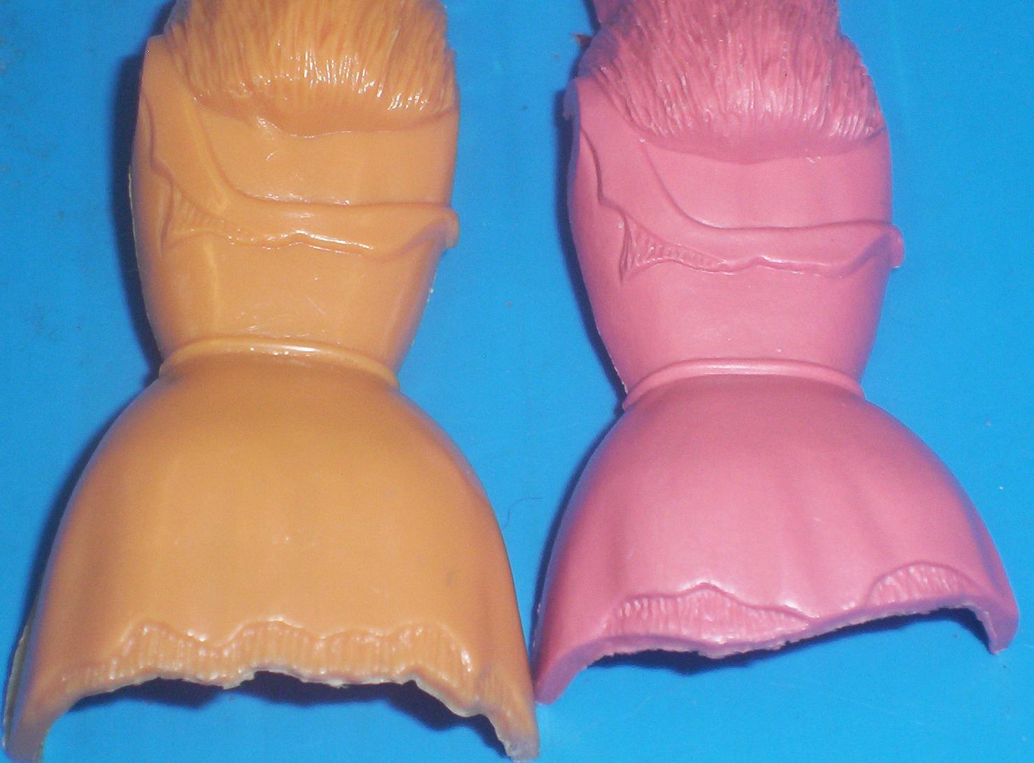 Prototype parts are pinkish, production parts are