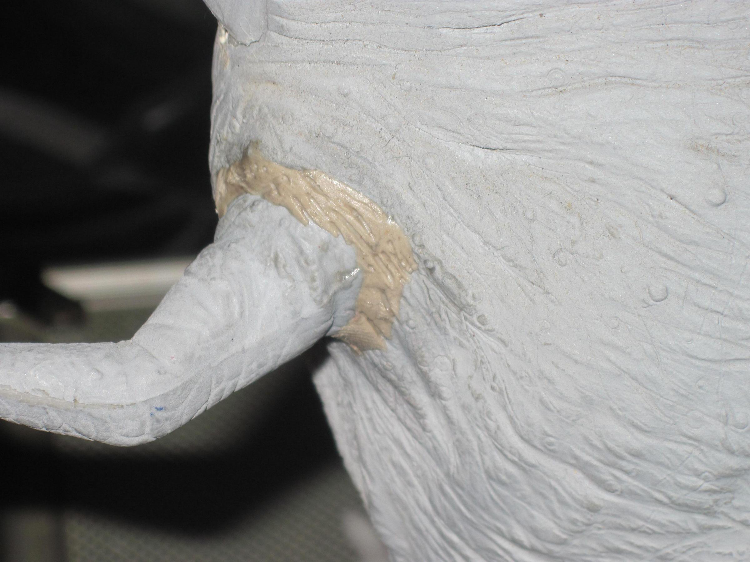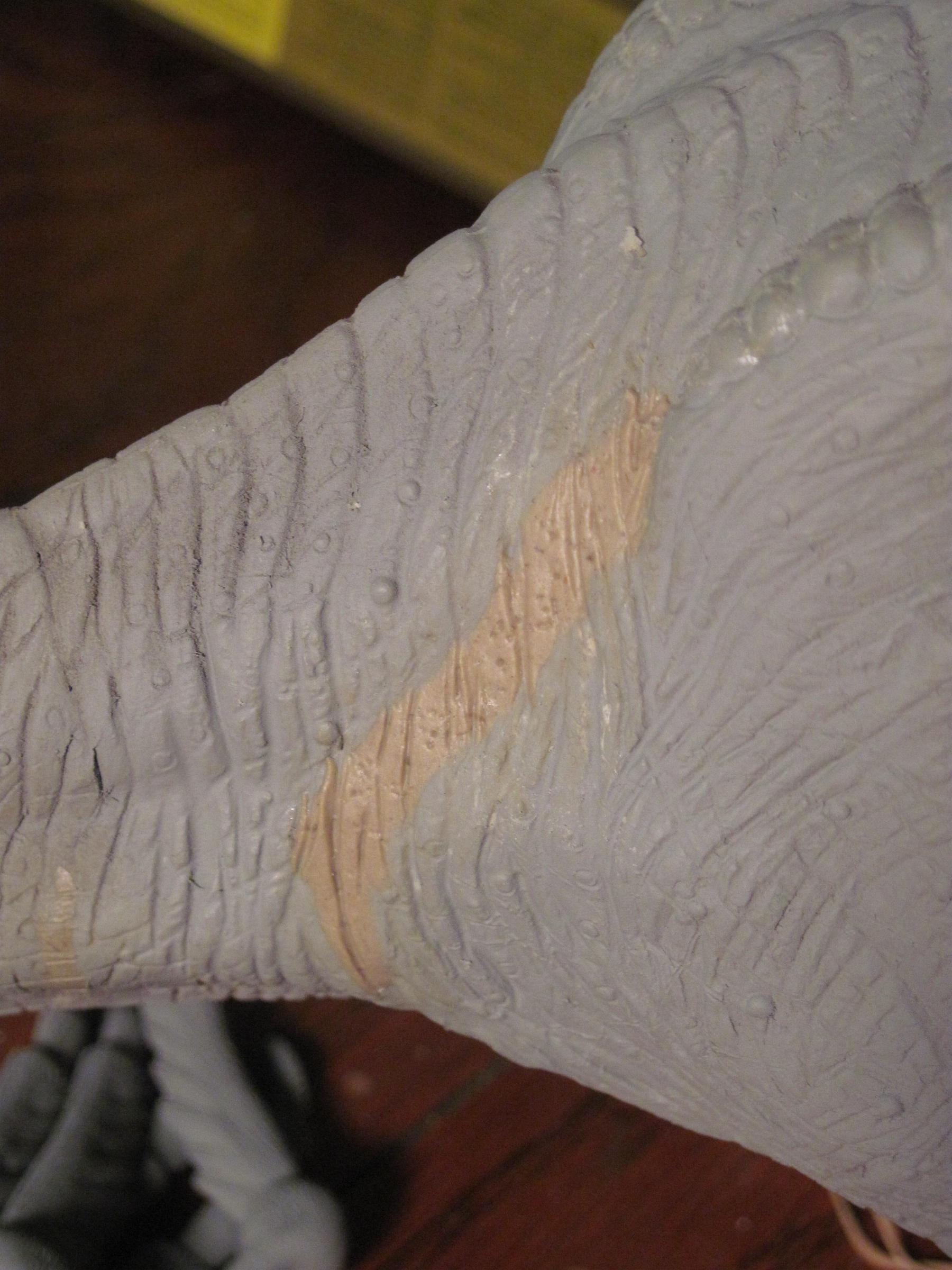 ![]() ![]() Well, the bulk of the putty work is done now. ![]() ![]() Of course, the farther I get, the more I see that I need to work on. The tail seam still bothers me. Now I can see a bit of the seam right down the back. And that right hip still needs some work. |