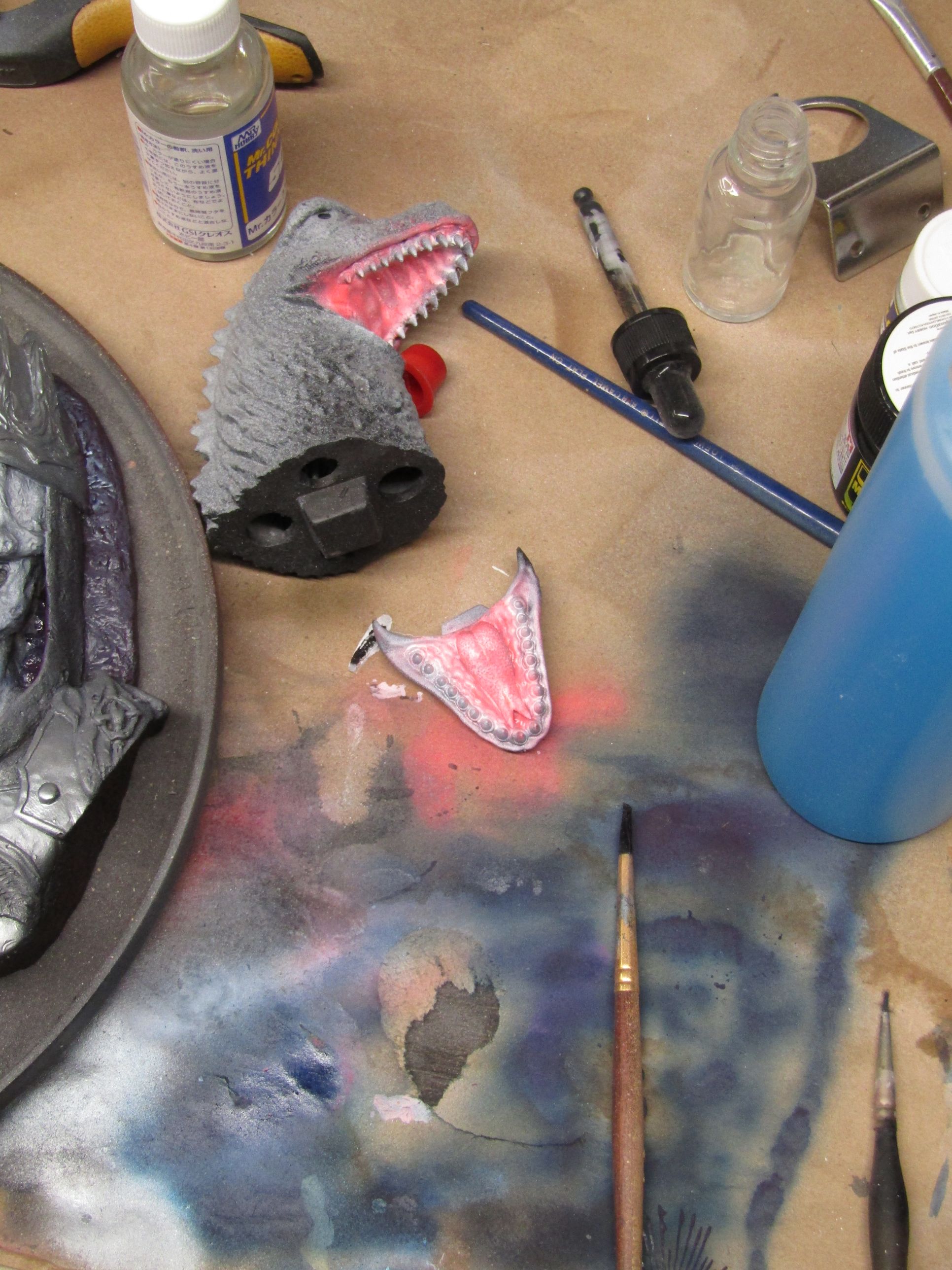 ![]() Still in the priming phase | ![]() Finally back to work on this sweet kit. Just blocking in some color in the mouth while I was airbrushing other parts. |